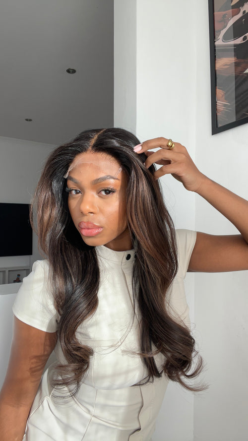 Recomiendo llevar el cabello con un trenzado pegado al cuero cabelludo para que quede lo más plano posible. Esto ayuda a que la peluca se asiente mejor, se vea más natural y resulte más cómoda durante todo el día.